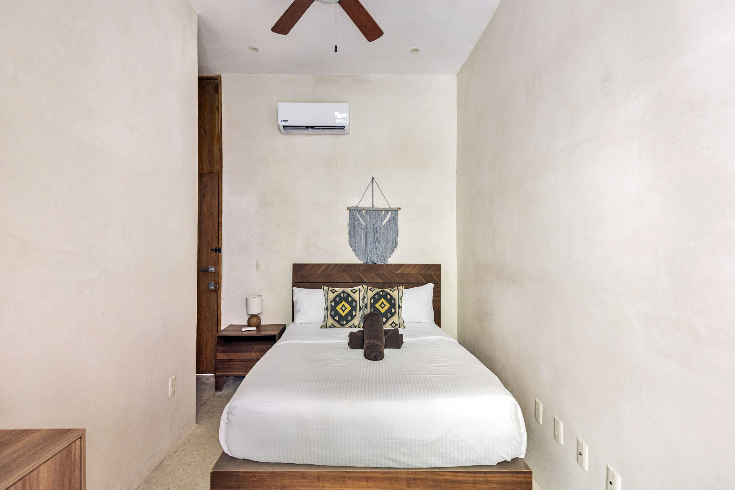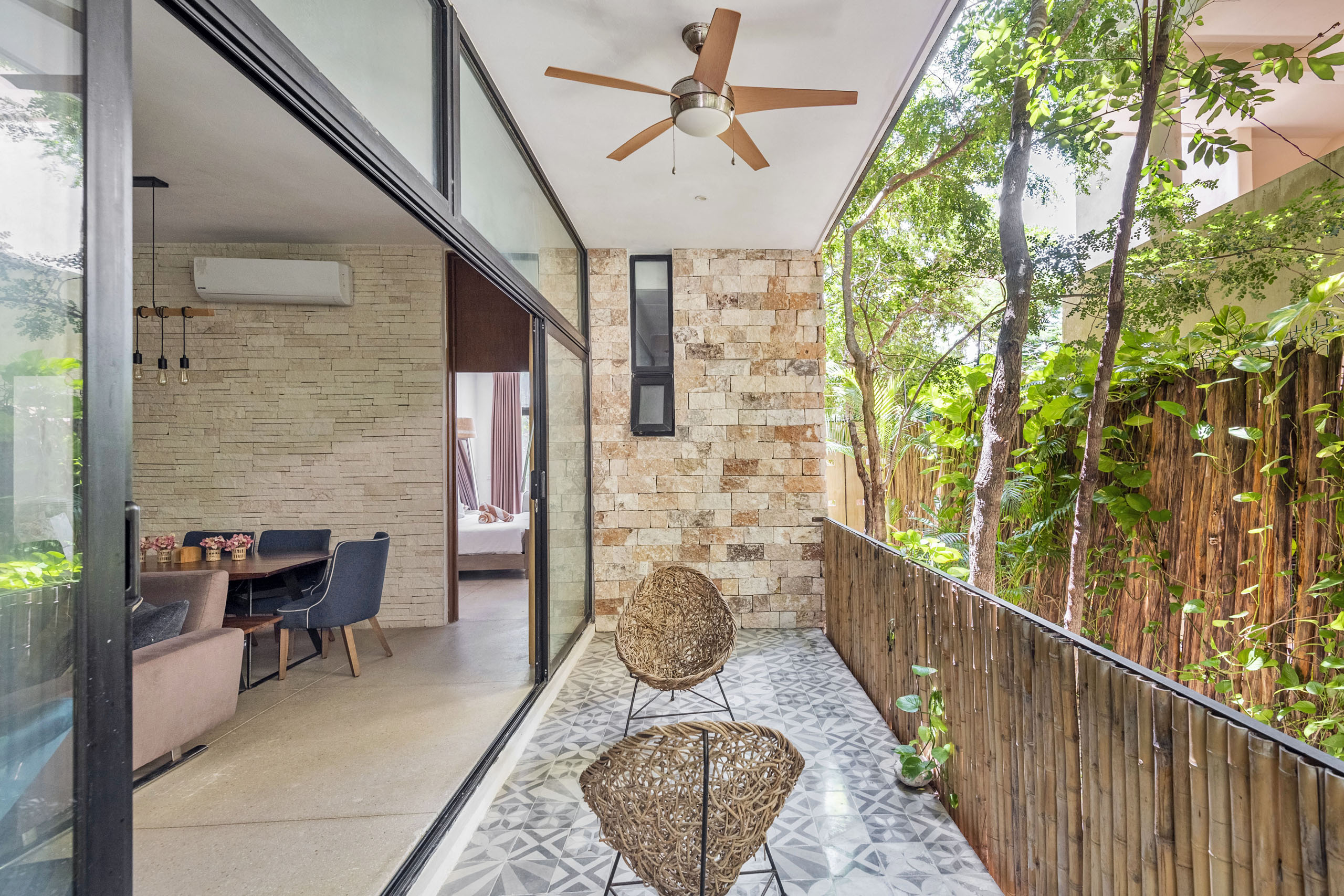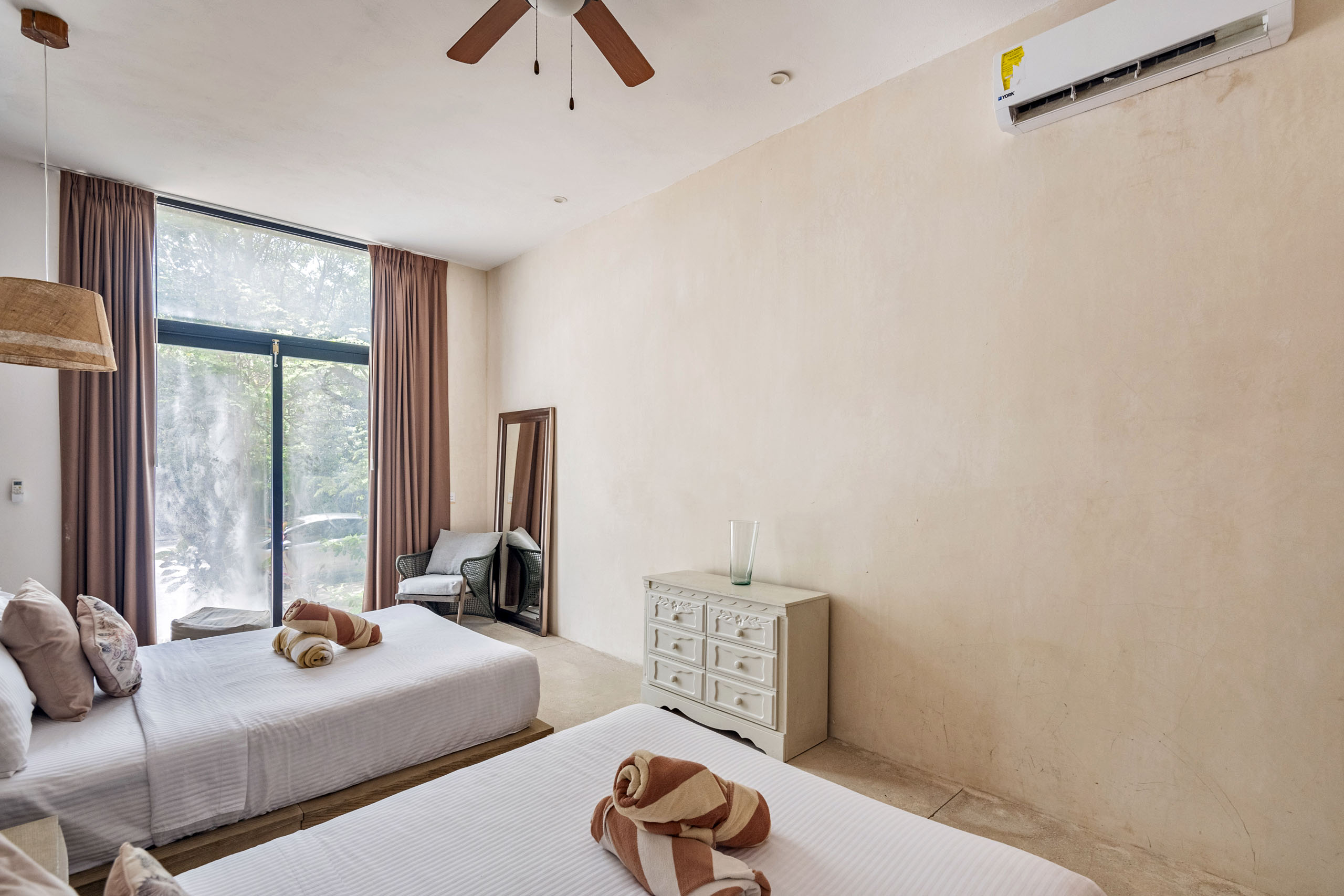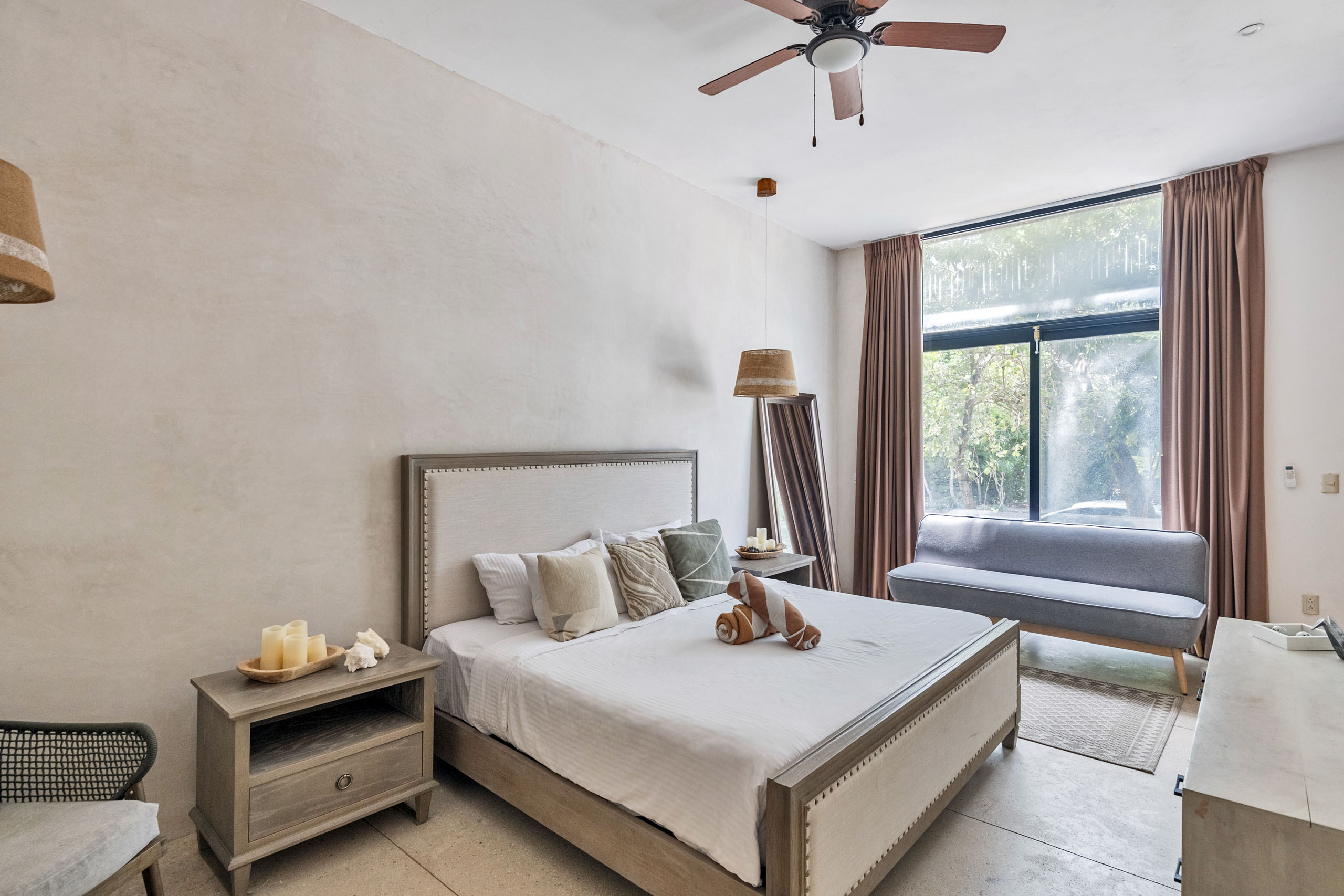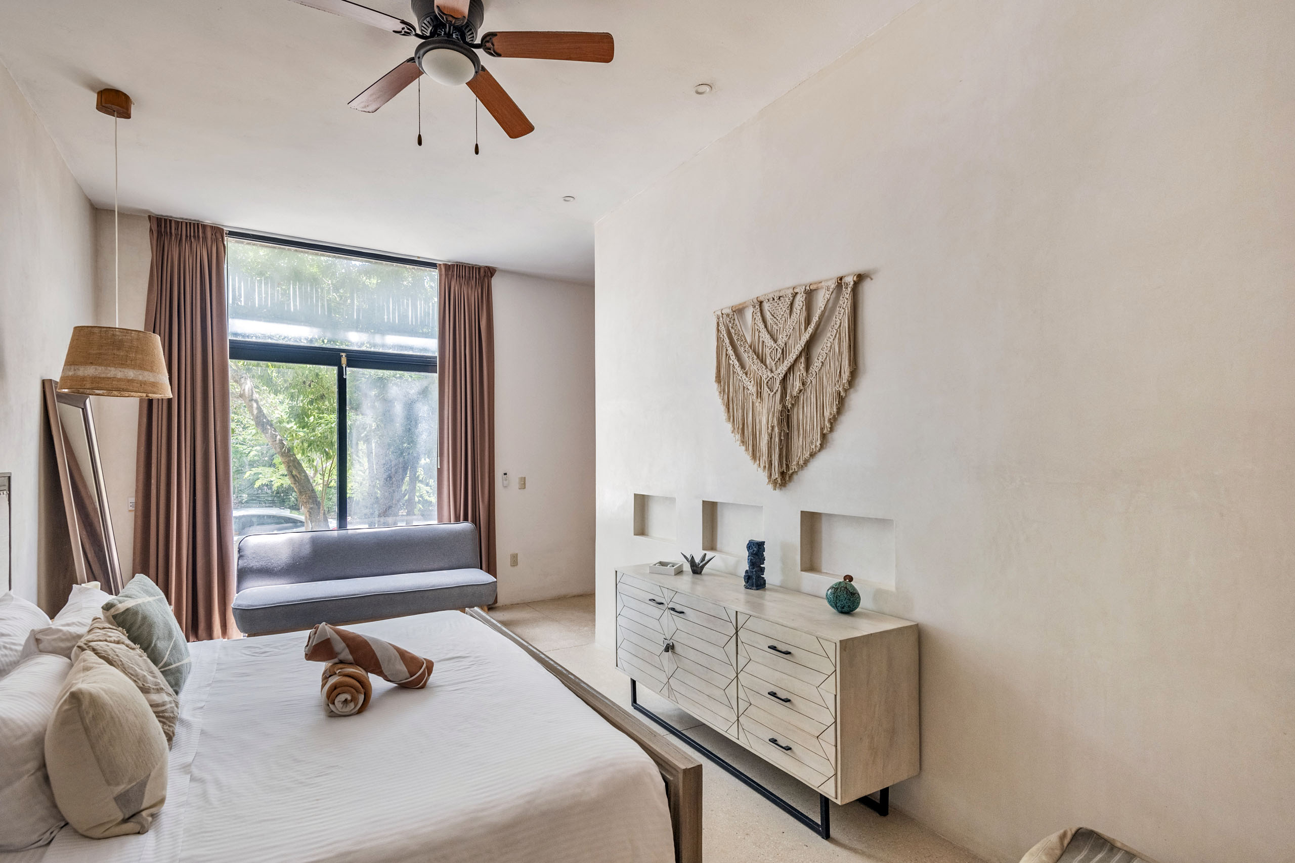Awaken each morning to the gentle caress of the Tulum breeze on your private balcony. Sip your coffee while gazing out over the lush foliage of Aldea Zama, feeling the magic of the surrounding landscape embrace you in its embrace. With two thoughtfully appointed bathrooms, mornings are a breeze, offering modern amenities and elegant design to elevate your routine.